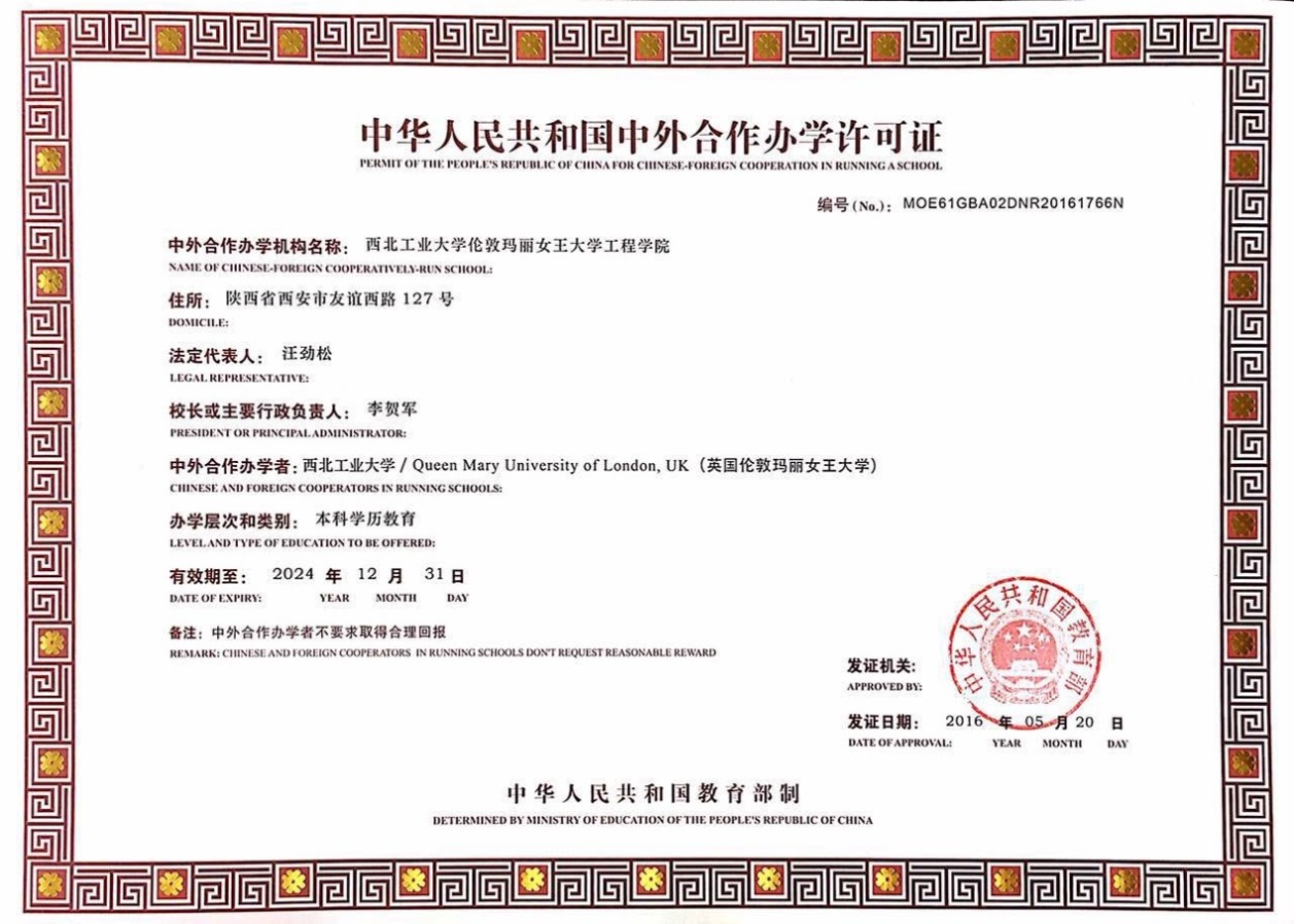 In partnership with Queen Mary University of London (QMUL), NPU has been granted permission by the Chinese Ministry of Education on May 20th, 2016 to establish a new Joint Educational Institution (JEI) called 'Queen Mary University of London Engineering School, NPU'. It is located in NPU’s campuses in Xi’an, China and will provide high-quality transnational bachelor degree programmes (Materials Science and Engineering, Polymer Materials Science and Engineering). The partnership, as a part of a wider strategy of internationalization of higher education in China, consists of the highest cultural communication system between the UK and China, and embodies the achievements that both universities have gained in the process of long-term international academic cooperation and communication in the area of Materials Science.
