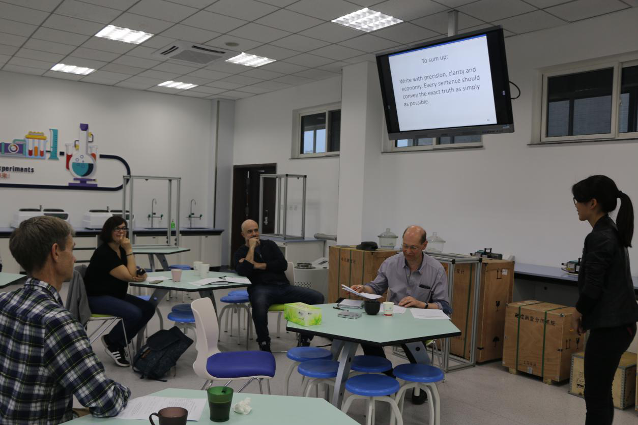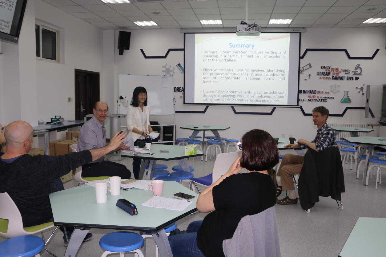 各位老师都充分准备了课堂教学内容,并在20分钟内用流利的外语、多样的教学手段进行了现场教学。各位专家围绕课堂教学用语、教学方法与技巧、课堂组织与计划,以及如何让员工有效参与等多个方面给出了中肯的评价并给出了有效的建议。现场研讨气氛热烈,大家重点讨论了在像功能材料概论、热力学与流体力学、材料试验这些理科类英文授课的课堂上,教师应该如何有效地将知识点用英文准确的传达给员工,并如何在员工们理解知识点有困难时帮助员工解决问题。