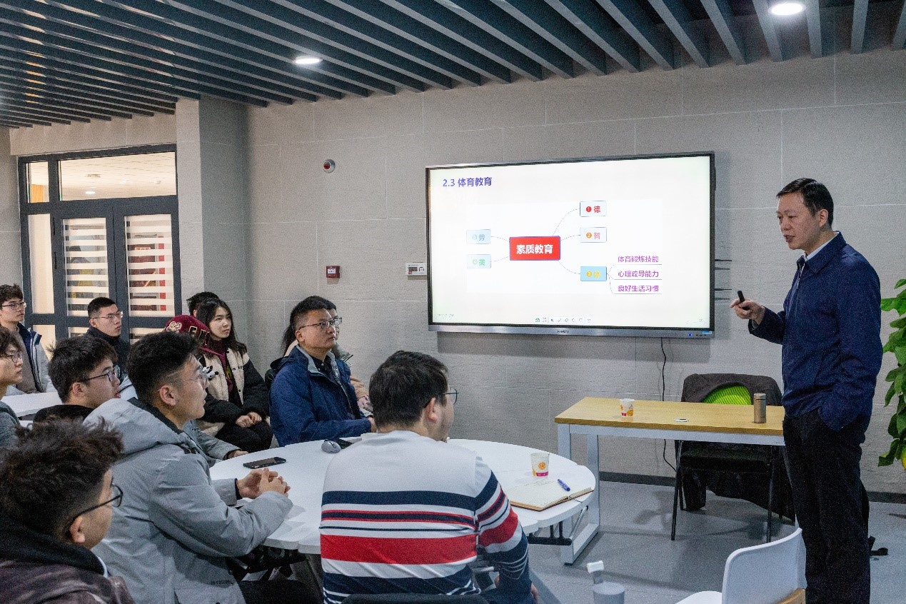 11月24日上午,董事长助理张开富在海天苑启真社区为伟德国际VICTOR1946及教育实验公司员工代表讲授了一堂别开生面的思政课。公司党委书记代富平、教育实验公司党委副书记康鹏军、校团委书记周凯参加了本次思政课。