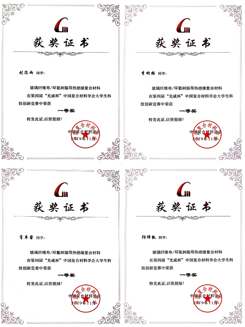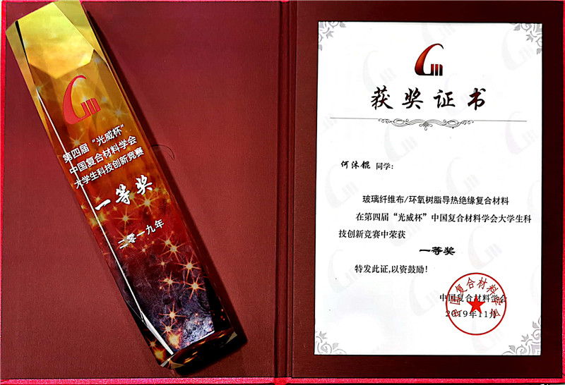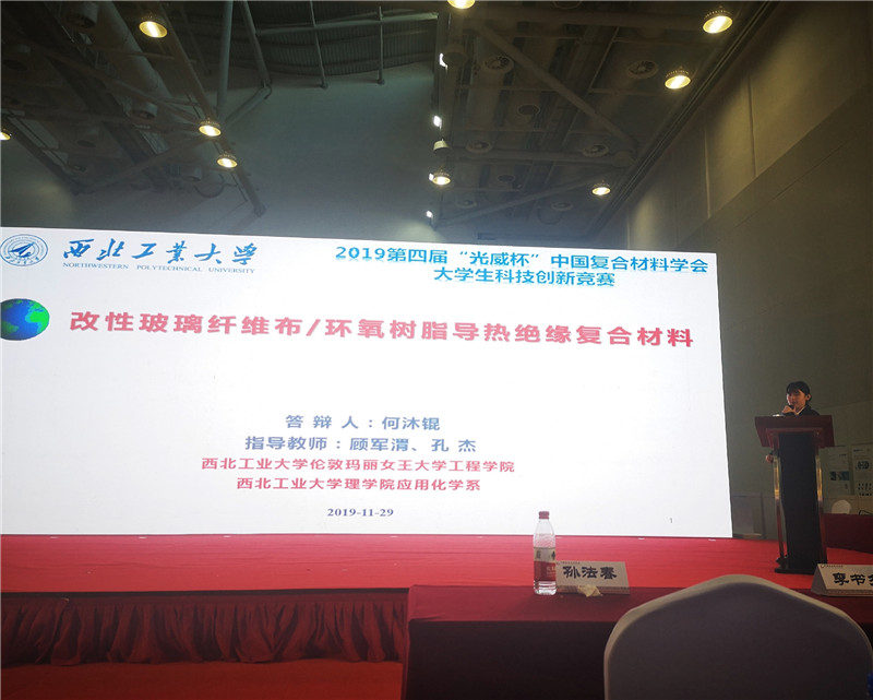 西工大新闻网11月30日电(阮坤鹏 顾军渭)11月29日,第四届“光威杯”中国复合材料学会老员工科技创新竞赛全国决赛在广东珠海落下帷幕。来自公司伟德国际VICTOR1946何沐锟、刘芯雨、李昀格、肖卓睿与理公司应用化学系阴祥凯5名本科生组成的竞赛团队,在理公司应用化学系顾军渭教授和孔杰教授共同指导下,完成的“玻璃纤维布/环氧树脂导热绝缘复合材料”项目最终斩获自主命题组唯一的全国一等奖。