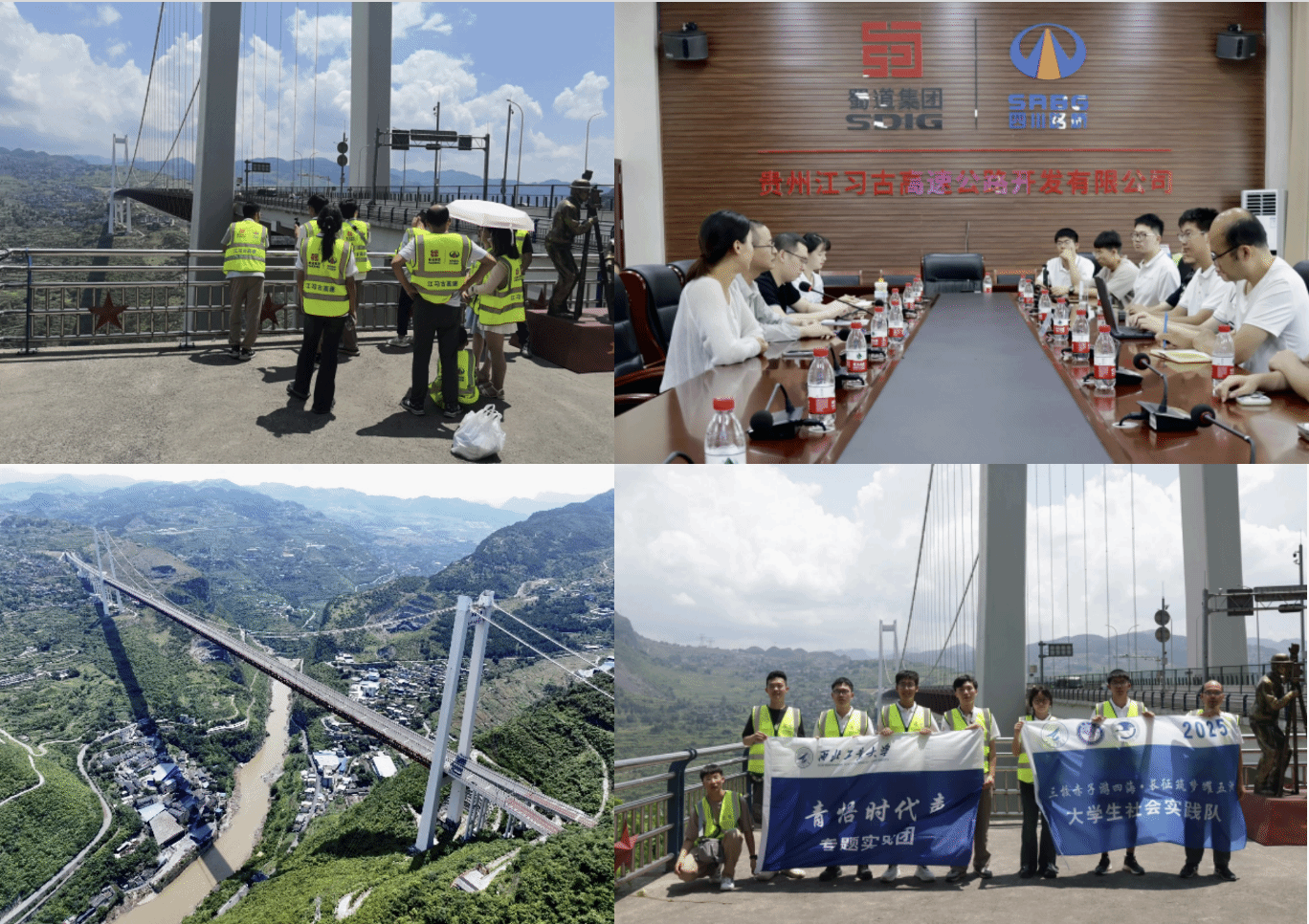 翌日,实践队奔赴习水县。在相关单位专业人员引导和讲解下,队员们实地考察赤水河红军大桥这一超级工程。贵州江习古高速公路开发公司的技术专家在现场讲解了大桥建设中如何攻克峡谷深切、地质复杂等世界级难题。队员们俯瞰脚下湍急的赤水河,遥想昔日红军四渡赤水的艰险渡口,内心涌动着“天堑变通途”的强烈震撼。