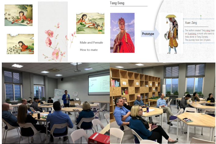 Following the first successful class, the second session-- Myths and Legends class was introduced to QMES teachers, Matt, Alan, Faith and Agne, as well as Executive Vice Dean Andy on the 18th of April. The Volunteer Team prepared plentiful materials and produced a professional presentation. They introduced all kinds of myths and legends from Pan Gu to Nv Wa, from Houyi and Chang’e to Niulang and Zhinv, and emphasized on the origin and stories of the Journey to the West, as well as Chinese mythical creatures and many vivid videos to explore the extensive and profound Chinese culture to the foreigners.