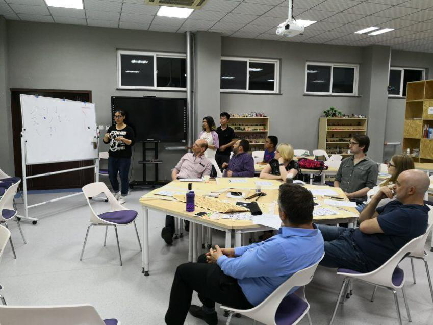 为促进文化交流,彰显文化自信,向外教展示中国书法文化的无穷魅力,进一步促进师生间的互动交流,5月23日下午七点,伟德国际VICTOR1946志愿者服务队的五名同学在公司员工活动室给外教们系统而生动地介绍了中国书法的文化内涵,并进行了中国书法实践。
