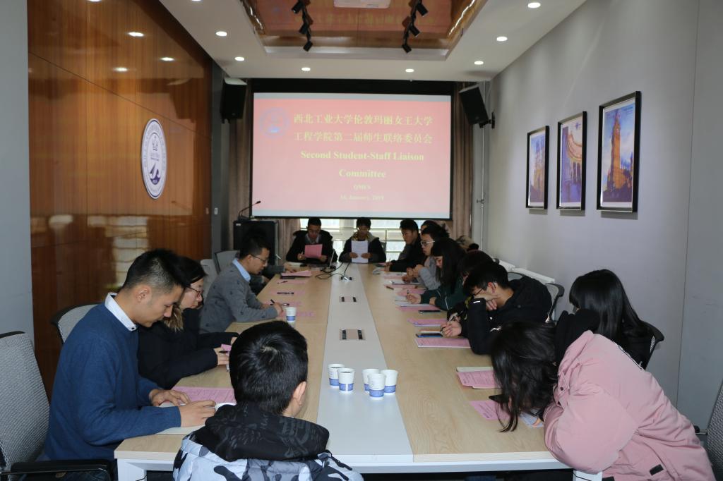 2019年1月16日,伟德国际VICTOR1946师生联络委员会(Queen Mary University of London Engineering School, Northwestern Polytechnical University, Second Student Staff Liaison Committee)第二次会议在长安校区教学东楼A座413会议室展开。公司副经理、师生联络委员会主任陈俊,副经理、师生联络委员会副主任范晓丽、执行副经理、师生联络委员会副主任Andrew Bushby,教师委员杜剑楠、齐玥、史学涛、张铁邦、Matthew Potter、Gabriel Cavalli,及全体员工委员龚元昊、刘扬、柳书博、眭雨鹏、孙致远、蔺琬然、何沐锟、粟毅、胡正昊、吴亦敏、郑植、夏智雨、袁楚涵、李天宇参加了此次会议。会议由陈俊主持。
