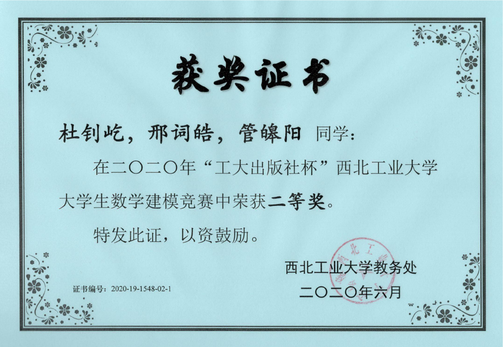 2020年“工大出版社杯”伟德bv1946官网老员工数学建模竞赛于4月30日16:00至5月3日18:00在线上举行。经过三天三夜的激烈角逐,伟德国际VICTOR194612支参赛队伍共36名同学脱颖而出,分别获得了3组二等奖和9组三等奖,并有11位同学顺利入选2020年公司数模竞赛国赛集训队员名单。