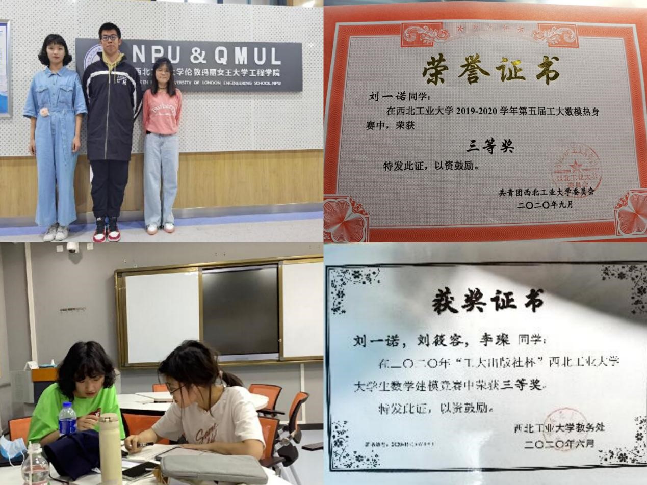 “作为一名共青团员,我时刻牢记习近平总书记对时代青年给予的希望,勇于担当,不负韶华,立志成为报效祖国、造福人民的科研工作者。”这是她在标兵评审答辩会上铿锵有力的发言。她深知“团队合作”的重要性,从大一上学期起积极组建团队,扛起团队前进的大旗。作为数学建模小组的队员,她用半年时间自学了10余种数学模型,并且能够独立查阅文献、灵活拆分组合,根据实际问题建立合适的模型求解,带领团队获得数模热身赛三等奖、数模校赛三等奖等奖项,并带领团队顺利完成2020年数模国赛。此外,她重视团队成员之间的“化学反应”,与大家一同进行基础学科、专业核心课程的研讨,成绩斐然。团队中2人获得国家奖学金,3人当选优秀老员工,获得各类先进个人称号12项,所有成员学分积均位于专业前12%,综合测评成绩位于专业前8%。