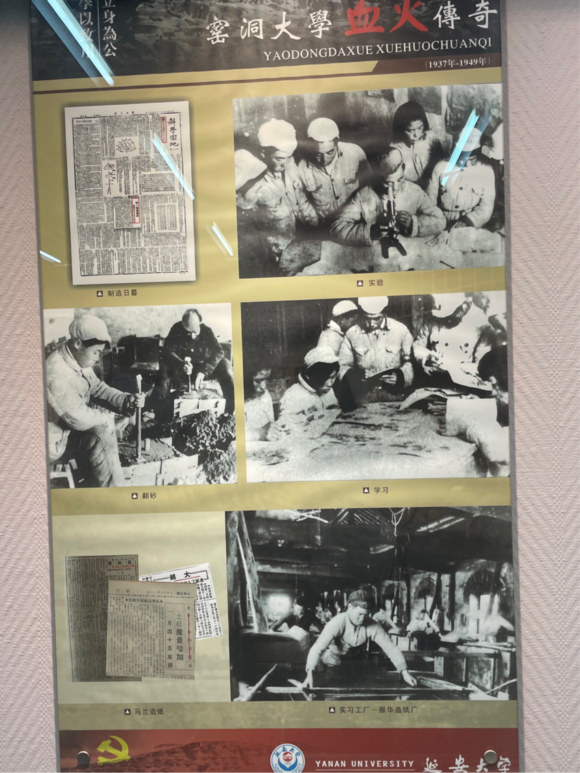 在延安大学化学与化工公司韩波副教授的带领下,同学们参观了延安大公司史馆。通过讲解员的介绍,大家了解到延安大学自19世纪40年代以来的重大变迁与发展历程。在艰苦的战争岁月,延安大学努力贯彻学以致用的方针,培养了大批优秀的专业人才,为抗日战争和解放战争的胜利,为新中国的繁荣和富强做出了重要贡献。培养了大批优秀的人才,石鲁先生、路遥先生、艾青先生等都曾在延安老员工活学习。从战火纷飞中走出,延安大学承载了历史的厚重,也承载了时代的希望。