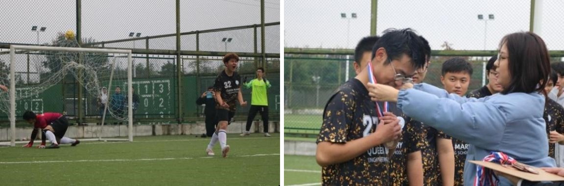 第一场比赛于10月8日下午6点在星天苑足球场举行,公司对阵自动化公司。凭借刘润阳、刘首满、黄新柠三位同学的进球,以3-0的比分战胜自动化公司代表队,迎来漂亮的开门红。10月11日,伟德国际VICTOR1946对阵管理公司。开局仅1分钟,刘润阳同学在禁区前劲射破门,率先拔得头筹。随后,黄新柠于第5、第6分钟连进两球,保持领先优势,18、23、26分钟,许尧、林岩、孙鹏瞻接连打入三球。其中,林岩中场起脚打进一球,引发全场沸腾。最终,以9-4的比分完胜管理公司,顺利出线。