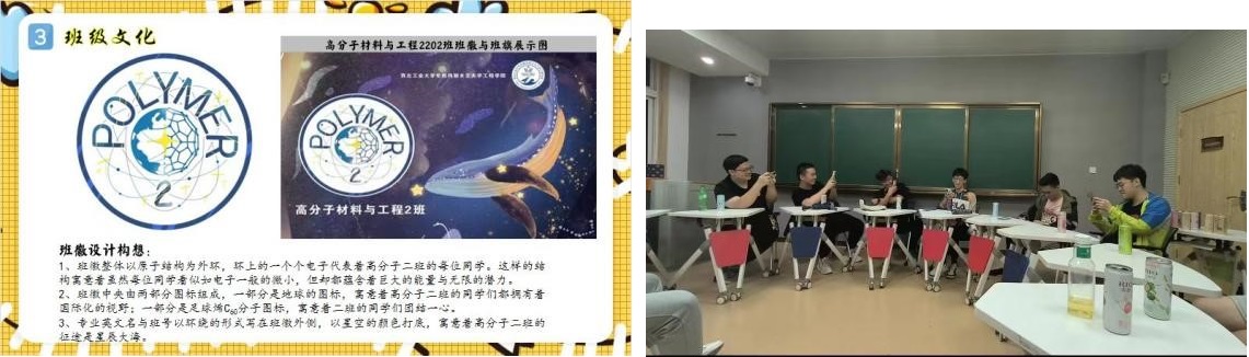 全体同学积极参与,体现出班级团结友爱的精神,在展示一张充满欢笑的班级全家福之后,二班同学用严谨合理的班级管理制度和多元多彩的班徽展现出独属于本班的班级文化特色。