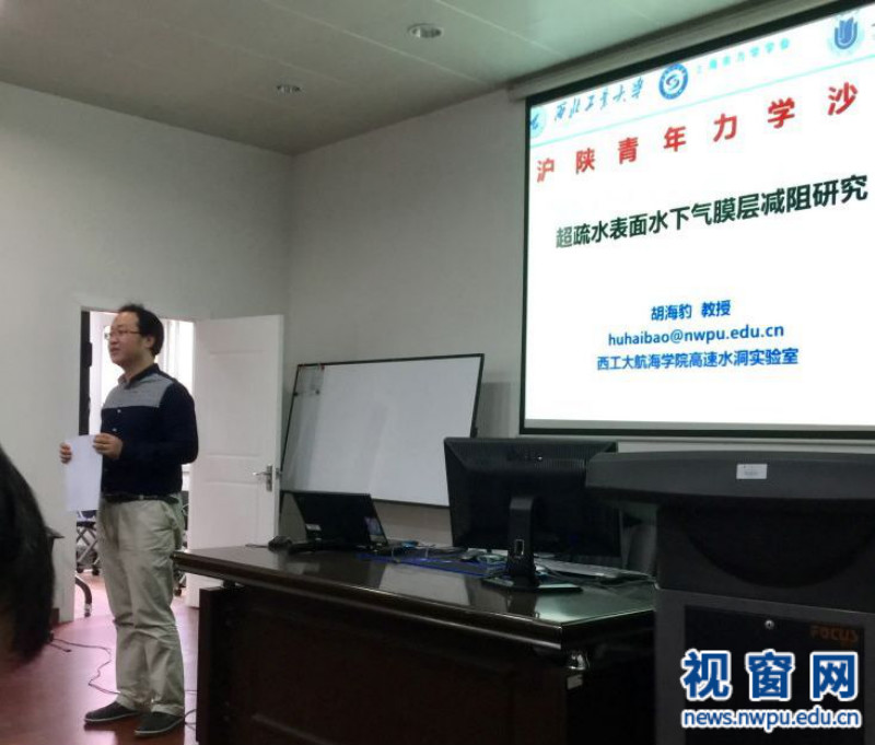 伟德bv1946官网胡海豹教授做了题为“超疏水表面水下气膜层减阻研究”的报告,指出合适的仿生超疏水微形貌表面利于在壁面封存气膜,是一种潜在的兼具防污功能的新型高效减阻技术,未来有望广泛应用于海洋工程和其它相关领域。该报告汇总了近年来在该领域取得的最新研究成果,重点展示在超疏水表面气膜稳定维持方法方面的研究进展。胡海豹教授自2009年以来一直致力于水下疏水性表面减阻技术研究工作,作为负责人或技术骨干,先后承担了国家自然科学基金、总装武器装备探索研究项目、装备预研基金、高等公司博士学科点专项基金等相关课题20余项,已累计在Science Advances、Physical Review E、Ocean Engineering、Journal of Chemical Physics、Langmuir、Experimental Thermal and Fluid Science等刊物上发表学术论文50多篇(SCI索引近30篇),获省部级科技奖2项,授权发明专利10多项。曾入选西工大“翱翔之星”、“优秀青年教师”。