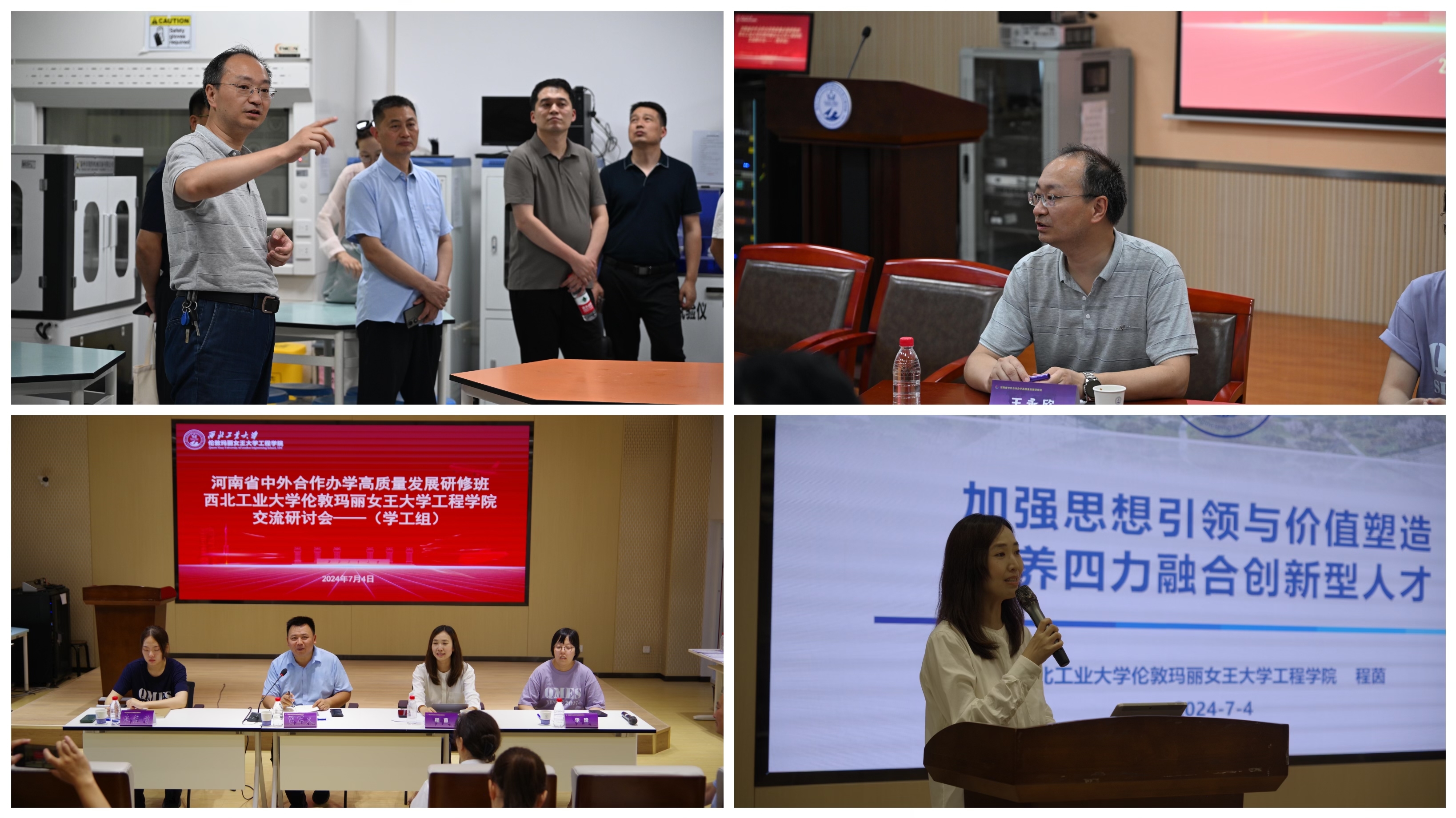 7月4日下午,在王永欣及程茵的带领下,调研团分两组对公司整体办学环境进行实地参观,并在公司210、410报告厅分别开展教学和员工工作专项研讨会。会上,双方就中外合作办学全英文授课模式、团队配备与管理、教材选用、员工就业与深造、奖学金设定等问题进行交流讨论。安阳师范公司副董事长王新全、河南理工大学利莫瑞克国际公司副经理贺军义等高校参会代表均表示此次调研成果颇丰,为兄弟中外合作办学单位的发展提供新的思路与路径。