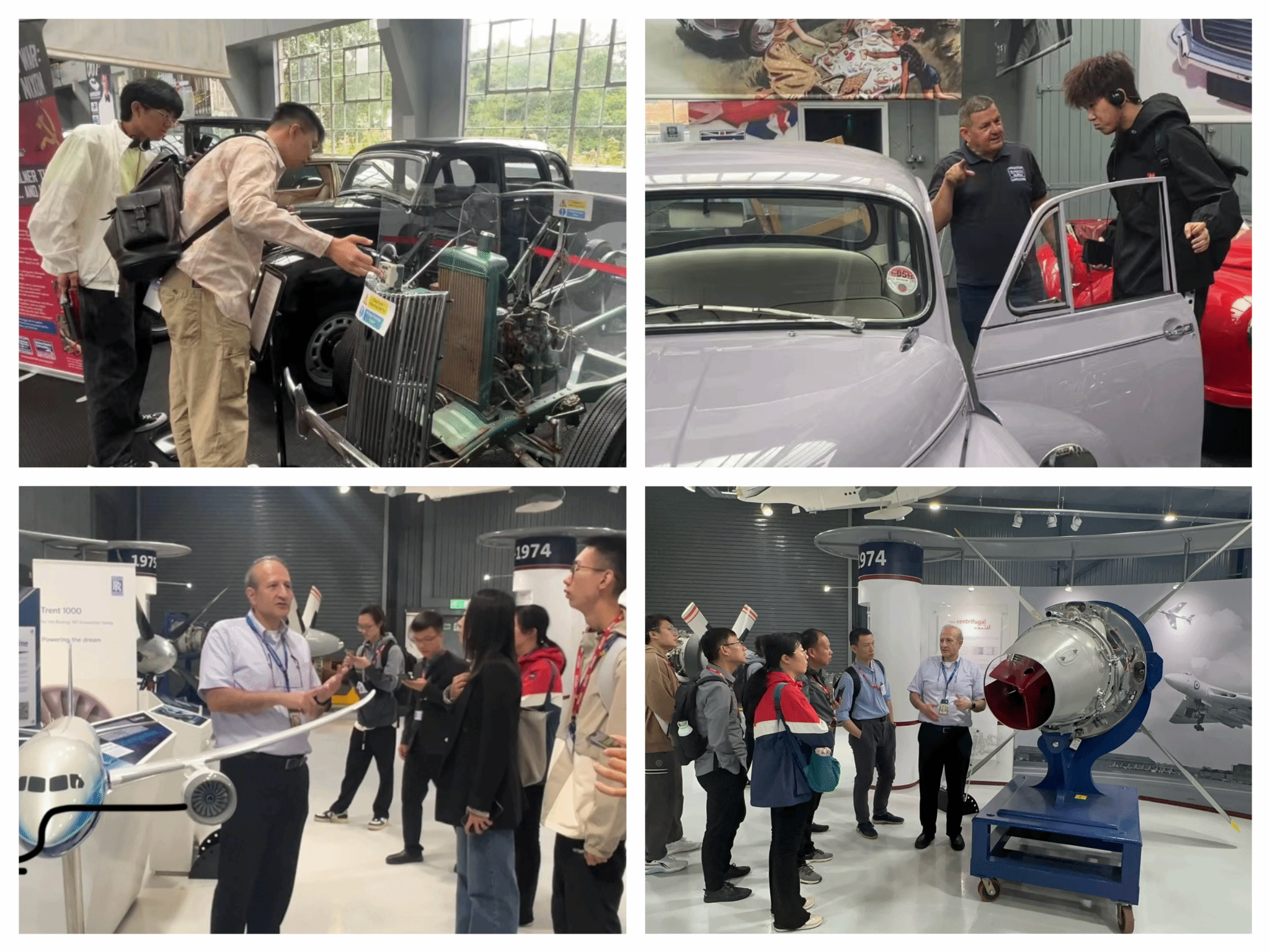 在此次研学活动中,同学们更是有幸参观了德比郡的汽车展览馆和劳斯莱斯博物馆。大家不仅在汽车展览馆了解了20世纪古董车的内饰工艺及制造技术,还深入劳斯莱斯博物馆了解劳斯莱斯在汽车、飞机及轮船等领域发动机的研发历程、制造工艺及技术实力,感受劳斯莱斯在百年发展过程中持续创新、追求卓越的精神。