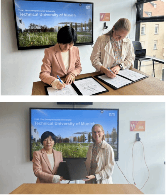 7月24日,范经理一行会见了慕尼黑工业大学国际部总经理Friederike Hettinger 及业务发展总监Jana Legtenborg。双方交流了两所公司的科研教学及发展理念并签署了寒暑期交流项目的合作协议。