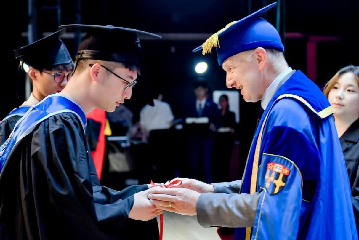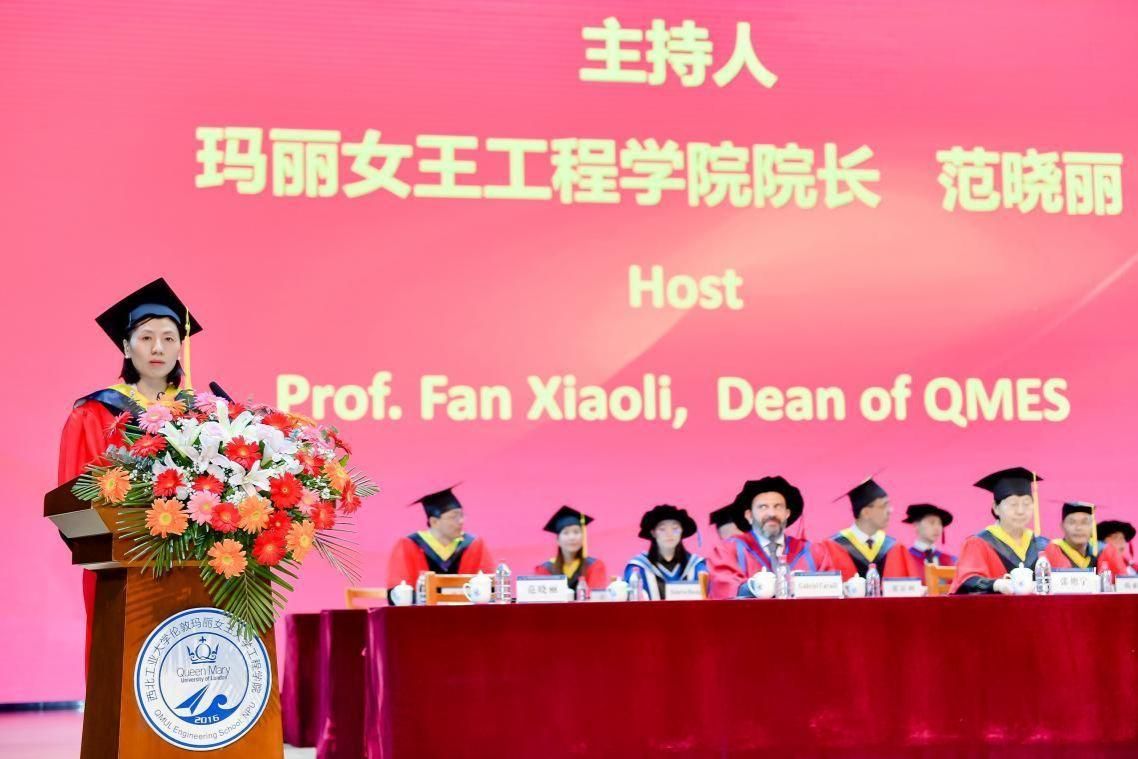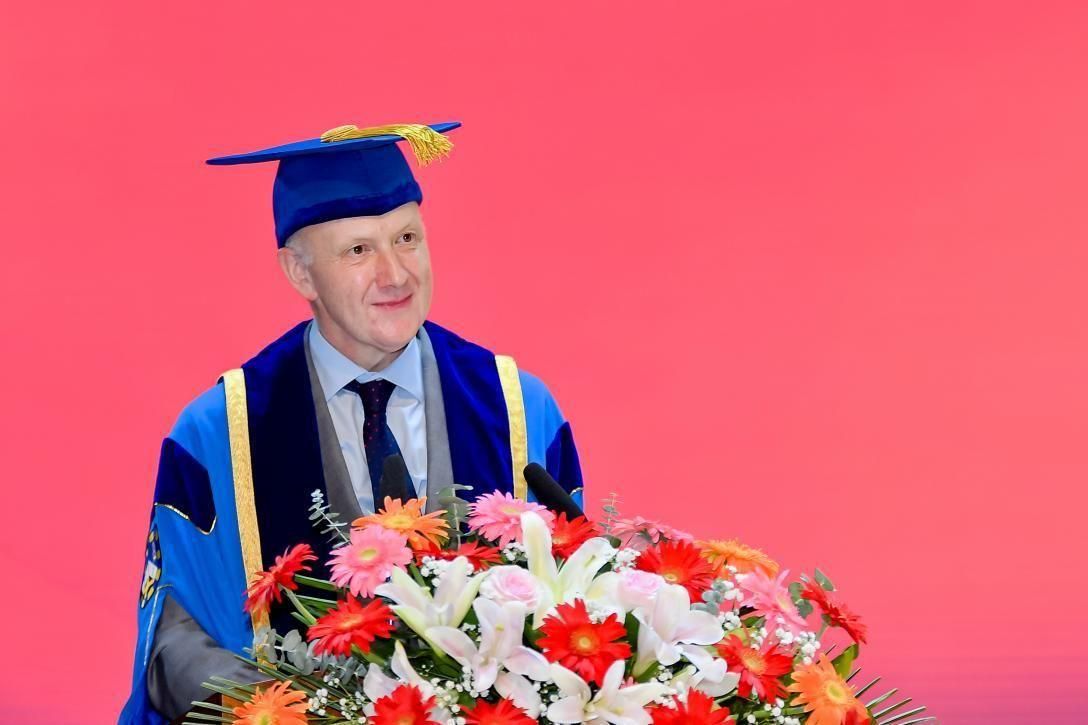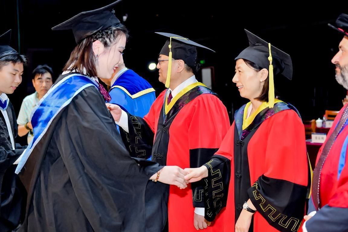 Then, Principal Colin Bailey presented Dr. Deng Xinru with a doctorate certificate. Dr. Deng received her PhD in Materials Science from QMUL in 2019 and was appointed as Assistant Professor at QMES after graduation. She perfectly portrays the role of ambassador of friendship between two universities, two cities and two countries in pursuit of academic excellence by virtue of QMES.