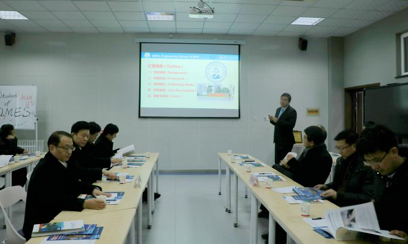 On January 15,a delegation of the Taicang government visited QMES. Shen Mi, Municipal Party Secretary of Taicang, Wang Jianguo, Deputy Municipal Party Secretary and Mayor of Taicang, 15 government staff from Taicang came to QMES and were accompanied by Vice President Huang Wei of NPU.