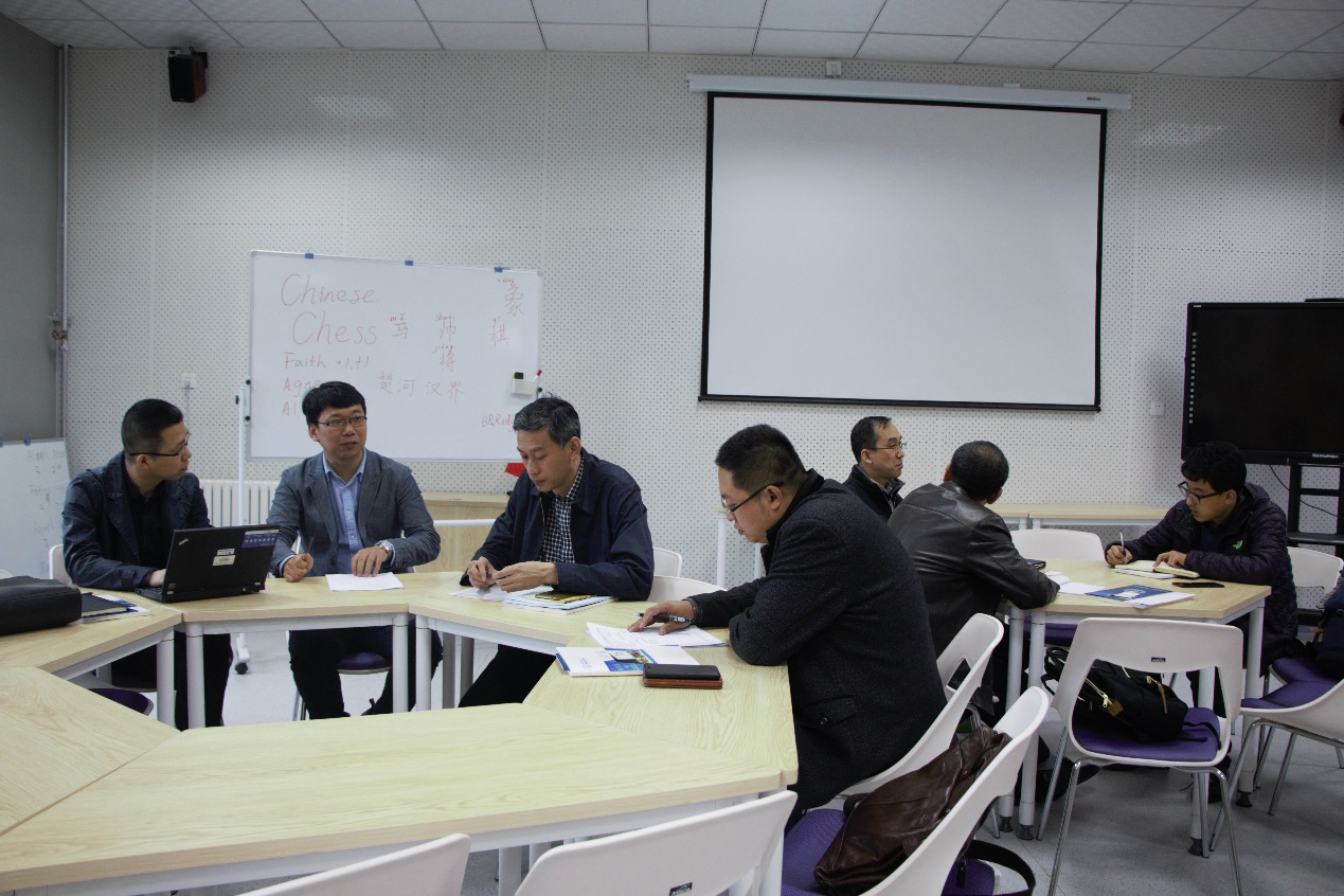 On the morning of April 13th, Chi Miao, Deputy Director of the International Exchange and Cooperation Department, Tian Yuxin, Deputy Director of the State-owned Assets Management Department, and Mao Jize, Associate Dean of the Undergraduate School, with other 8 people from Harbin Engineering University went to QMES to investigate the work of Sino-foreign cooperative education. Kong Jie, Dean of QMES, and Fan Xiaoli, Vice Dean met with the guests in the conference room and conducted in-depth discussions. Zhang Wentao, Executive Vice Dean of School of Foreign Studies, Gong Jian, Deputy Director of Teaching Affairs Department, Zhang Peng, Deputy Director of the Finance Department, Wang Geming, Deputy Director of Information Center of the School of Foreign Studies, and relevant staff of Office of International Cooperation attended the meeting.