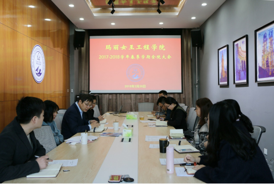 On February 26th, 2018, QMUL Engineering School, NPU held the new term work conference in Meeting Room 413, East Teaching Building A, Chang’an Campus. All of the staff of QMES joined the meeting. The meeting was hosted by Dean Kong Jie.