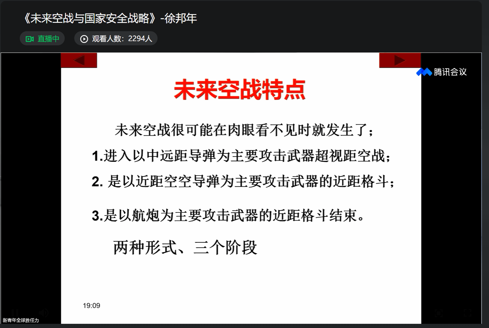 The first lecture of the “New Youth Global Competency Talent Training Program” of the spring semester of 2023 was successfully held online. The theme of the lecture was “Future Air Combat and National Security Strategy”. The number of real-time audience of universities across the country exceeded 2,300. The keynote speaker Professor Xu Bangnian, is a researcher, professor and doctoral supervisor of Chinese People’s Liberation Army Air Force Command College. He has profound knowledge in the fields of flight safety and stall spiral. He also has a deep understanding towards Chinese aeronautic and astronautic force construction and strategic goals.