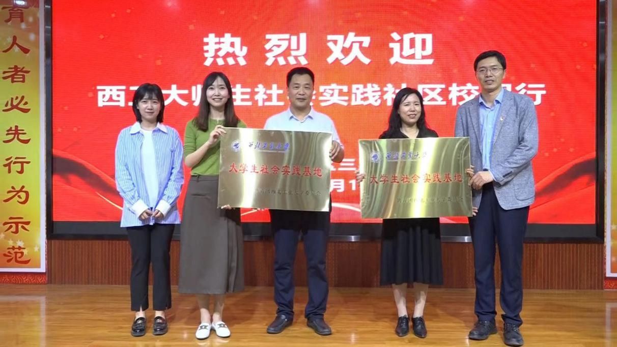 Later, Dai Fuping and Cheng Yin awarded the Social Practice Base for University Students in the Caojiamiao Community at Daminggong Street and in Sanxing Primary School respectively. Cao Pei gave a speech of thanks, hoping that the activity was just a starting point, and the students of NPU could go into the community and the primary school more frequently, conduct more communication with the grassroots and make the best advantage of the bases.