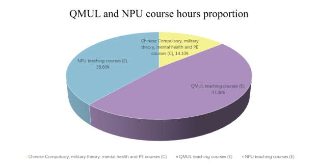 Except for Ideological and political theory modules, Military modules, Mental Health Education module and PE modules (23.5 credits), 79.0 credits are QMUL taught modules, 64.5 credits are NPU taught modules, and20 introduced modules are English Language, PDP, 14 discipline core modules and major project, partially satisfying the requirement ofRegulations of the People’s Republic of China on Chinese-Foreign Cooperation in Running Schoolsand MoE relative rules, which are: