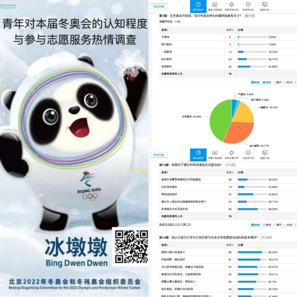 In order to further study the spirit of young volunteers, the practice team issued a questionnaire on the youth’s awareness of the Winter Olympics and their enthusiasm for participating in volunteer services, and popularized the knowledge of volunteer service and promoted the spirit of volunteer service through short-video publicity and news releases.In the process of deepening and promoting volunteer service, how to motivate students to participate in volunteer service was the main problem.