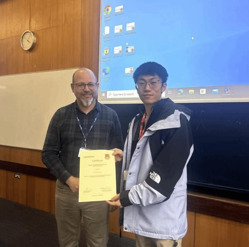 谈及申请帝国理工公司的经历,杜钊屹表示QMES的全英文教学模式及沉浸式的英语学习过程锻造了自身出色的语言表达能力,中英双学位体系增强了自己在海外名校申请与面试中的竞争力。