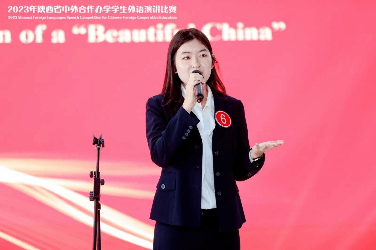 丁紫杉同学表示:“我很荣幸能够参与此次陕西省中外合作办学员工外语演讲比赛决赛。在演讲中,通过深入思考‘中国式现代化’的伟大成就,让我更坚定了祖国崛起的信心。同时,这次比赛对我而言也是一次很棒的体验,在这里,我不仅提升了演讲技能和英语水平,也结识了许多优秀的参赛选手们。最后,感谢我所有支持我的老师和同学,我将继续努力,为祖国繁荣贡献自己的青春力量。”